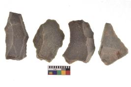 | Description / विवरण | There are n-4 of utilized flake cores. There are multidirectional irregular dominant scar pattern on both dorsal and ventral face of the cores. |