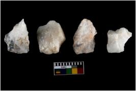 | Description / विवरण | Specimen of a cores with several broad fluted marks. Some are irregular in shape whereas some are tapering at one end. |