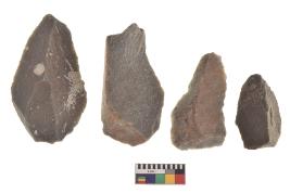 | Description / विवरण | There are n-4 of utilized flake cores. There are multidirectional irregular dominant scar pattern on both dorsal and ventral face of the cores. |