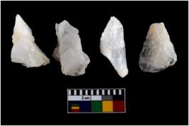 | Description / विवरण | There are n-4 of intact utilized flakes made up of Quartz. Some of them have bulge of percussion and some are flat flakes. |