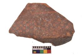 | Description / विवरण | Specimen of black on red ware with decorative geometric Two horizontal bands containing criss-cross pattern painting. |