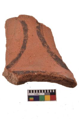 | Description / विवरण | Specimen of black on red ware with decorative geometric Curve lines painting. |