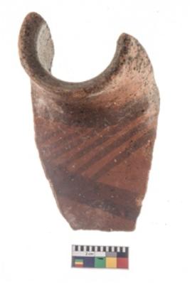 | Description / विवरण | Specimen of potsherd black on red painted pottery. It is fine fabric in sharp contrast with painted design are executed in black pigment. |