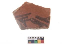 | Description / विवरण | Specimen of potsherd black on red painted pottery. It is fine fabric in sharp contrast with painted design are executed in black pigment. |