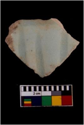 | Description / विवरण | Specimen has a glossy white surface with faint blue painting over it. |