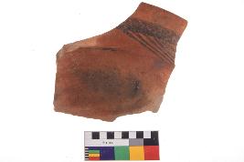 | Description / विवरण | Specimen of potsherd with black decorative geometric Linear painting, Type Black on Red Ware . |