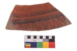 | Description / विवरण | Specimen of potsherd with black decorative geometric Set of two zigzag bands painting, Type Black on Red Ware . |