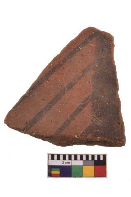 | Description / विवरण | Specimen of black on red ware with decorative geometric Oblique lines painting. |