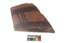 | Description / विवरण | Specimen of potsherd black on red painted pottery. It is fine fabric in sharp contrast with painted design are executed in black pigment. |
