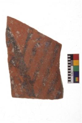 | Description / विवरण | Specimen of fine red ware; it shows geometric pattern painting on its exterior. Type Black on Red Ware . |
