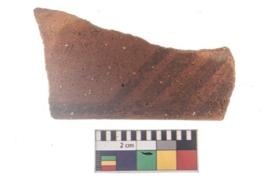 | Description / विवरण | Specimen of potsherd with black decorative linear painting . |