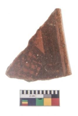| Description / विवरण | Specimen of potsherd with black decorative geometric Net Pattern painting . |