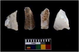 | Description / विवरण | There are n-4 of intact utilized flakes made up of Quartz. Some of them have bulge of percussion and some are flat flakes. |