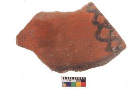 | Description / विवरण | Specimen of potsherd with black decorative geometric painting, Type Black on Red Ware . |