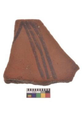 | Description / विवरण | Specimen of black on red ware with decorative geometric Two sets of three oblique bands in opposite site painting. |