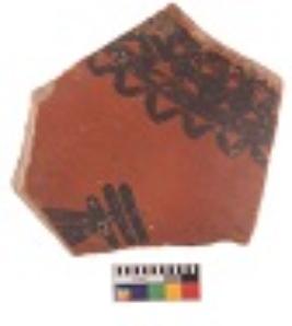 | Description / विवरण | Specimen of Potsherd black on red painted pottery. It is fine fabric in sharp contrast with painted design are executed in black pigment. |