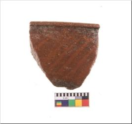 | Description / विवरण | Specimen of potsherd with black decorative geometric painting. Type Black on Red Ware . |
