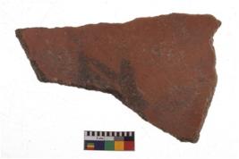 | Description / विवरण | Specimen of fine red ware; it shows geometric pattern painting on its exterior. Type Black on Red Ware . |