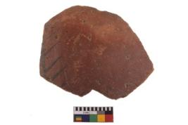 | Description / विवरण | Specimen of fine red ware; it shows geometric pattern painting on its exterior. Type Black on Red Ware . |
