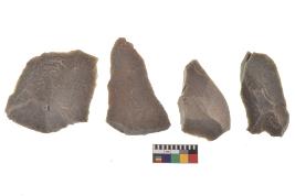 | Description / विवरण | There are n-4 of utilized flake cores. There are multidirectional irregular dominant scar pattern on both dorsal and ventral face of the cores. |