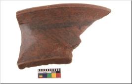 | Description / विवरण | Specimen of potsherd with black decorative geometric painting. Type Black on Red Ware . |