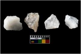 | Description / विवरण | Specimen of a cores with several broad fluted marks. Some are irregular in shape whereas some are tapering at one end. |