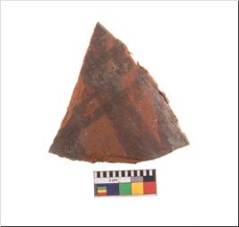 | Description / विवरण | Specimen of potsherd with black decorative geometric painting. Type Black on Red Ware . |