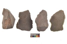 | Description / विवरण | There are n-4 of utilized flake cores. There are multidirectional irregular dominant scar pattern on both dorsal and ventral face of the cores. |