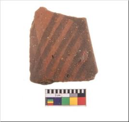 | Description / विवरण | Specimen of potsherd with black decorative geometric painting. Type Black on Red Ware . |