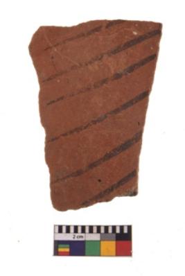 | Description / विवरण | Specimen of fine red ware; it shows geometric pattern painting on its exterior. Type Black on Red Ware . |