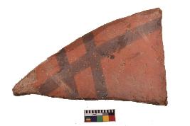 | Description / विवरण | Specimen of black on red ware with decorative geometric Curved lines painting. |