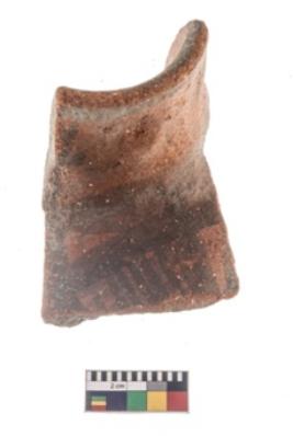 | Description / विवरण | Specimen of potsherd with black decorative geometric painting . |