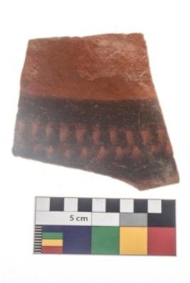 | Description / विवरण | Specimen of potsherd with black decorative geometric painting . |