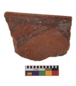 | Description / विवरण | Specimen of fine red ware; it shows geometric pattern painting on its exterior. Type Black on Red Ware . |