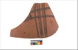 | Description / विवरण | Specimen of potsherd with black decorative geometric painting. Type Black on Red Ware . |