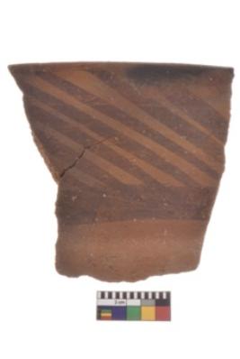 | Description / विवरण | Specimen of black on red ware with decorative geometric Outcurved lines painting. |