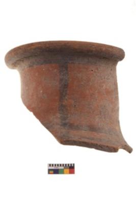 | Description / विवरण | Specimen of fine red ware; it shows geometric pattern painting on its exterior. Type Black on Red Ware . |