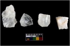 | Description / विवरण | Specimen of a cores with several broad fluted marks. Some are irregular in shape whereas some are tapering at one end. |