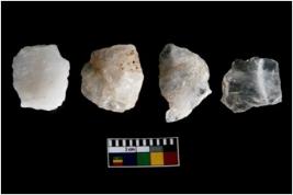 | Description / विवरण | Specimen of cores with weathered cortex and several broad fluted marks. Some of them are irregular in shape, whereas some are tapering at one end. |