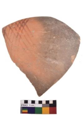 | Description / विवरण | Specimen of potsherd with decorative geometric painting. Type Black on Red Ware . |