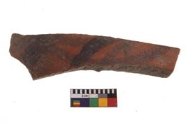 | Description / विवरण | Specimen of fine red ware; it shows geometric pattern painting on its exterior. Type Black on Red Ware . |