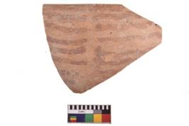 | Description / विवरण | Specimen of potsherd with decorative geometric painting. Type Black on Red Ware . |