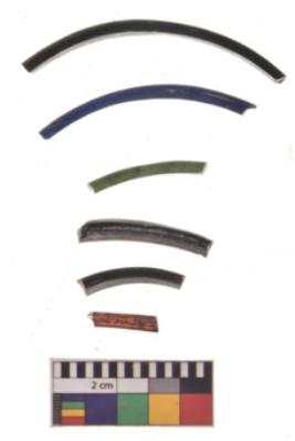 | Description / विवरण | Specimen n-6 having glossy black, blue and brown surface. They are circular in cross-section. |