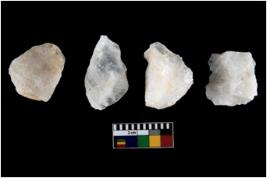 | Description / विवरण | Specimen of cores with weathered cortex and several broad fluted marks. Some of them are irregular in shape, whereas some are tapering at one end. |