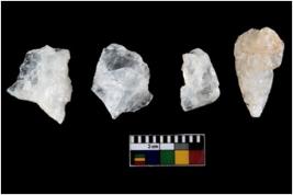 | Description / विवरण | Specimen of cores with weathered cortex and several broad fluted marks. Some of them are irregular in shape, whereas some are tapering at one end. |