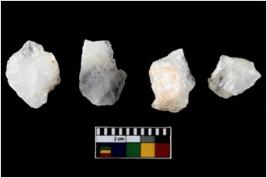 | Description / विवरण | Specimen of cores with weathered cortex and several broad fluted marks. Some of them are irregular in shape, whereas some are tapering at one end. |