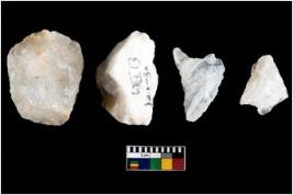 | Description / विवरण | Specimen of cores with weathered cortex and several broad fluted marks. Some of them are irregular in shape, whereas some are tapering at one end. |