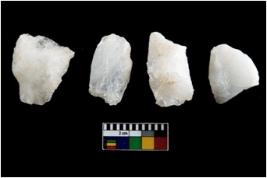 | Description / विवरण | Specimen of cores with weathered cortex and several broad fluted marks. Some of them are irregular in shape, whereas some are tapering at one end. |