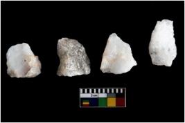 | Description / विवरण | Specimen of cores with weathered cortex and several broad fluted marks. Some of them are irregular in shape, whereas some are tapering at one end. |