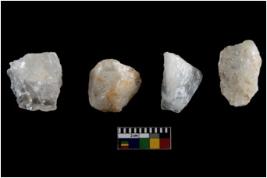 | Description / विवरण | Specimen of cores with weathered cortex and several broad fluted marks. Some of them are irregular in shape, whereas some are tapering at one end. |